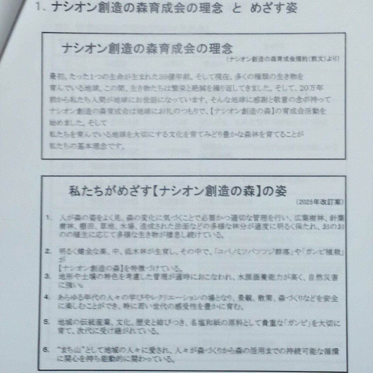 そんな願いと思いでプロジェクトを発足させたメンバーたちが、4月28日、いよいよ正式に新体制・新方針で森づくり活動の運営をしていくことに相成りました。総会を開き、創造の森の現状を踏まえてこうあってほしいという森の姿も正式に承認されました。