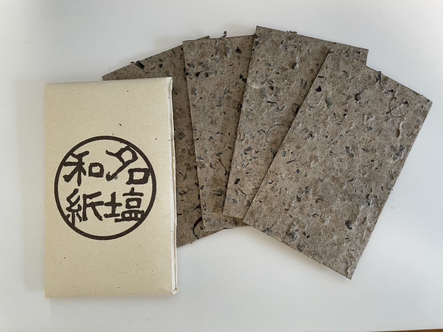 もうひとつは、ガンピ樹皮入り名塩和紙ぽち袋。