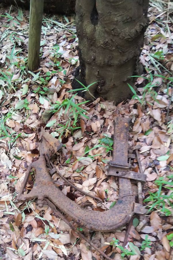 ベンチのひろばにする創造の森の棚田では、里山だった時代、牛耕が行われていました。錆びた鉄製の犂が掘り出されています。錆びついていますが、ご関心のある方は、5/25(日)に是非ご覧になってください。牛馬の助けのありがたさがずっしりと感じられると思います。