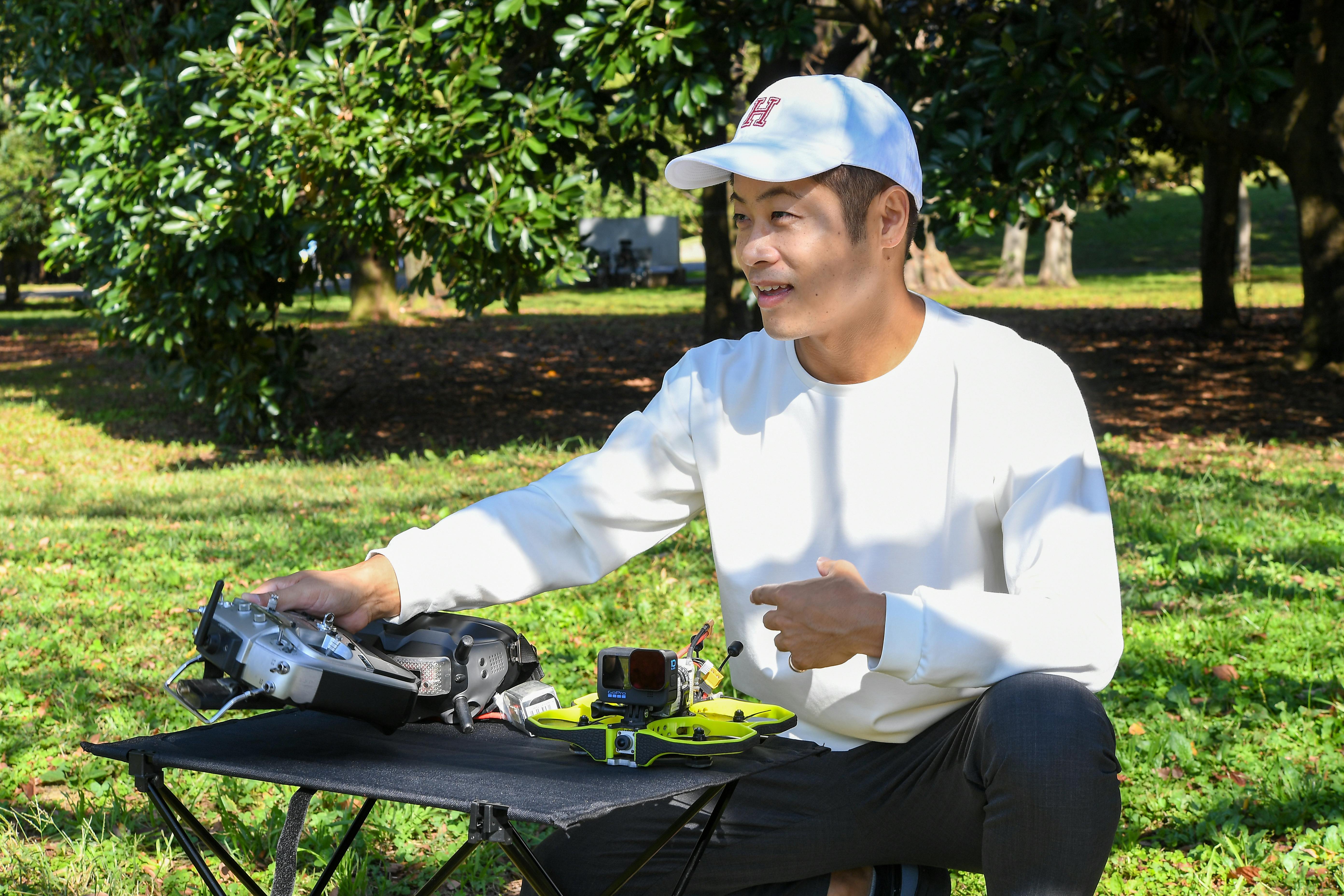 千葉県柏市、青山学院大学出身。株式会社ドローンエンタテインメント代表取締役。大小ドローンを100機以上所有。プログラマーからドローンレーサーへ転身、ドローンレースやエンタメ・イベントを多数実施。TVCMや映画撮影、大規模イベント企画運営、番組企画監修や、教育イベントの実施などを行う。