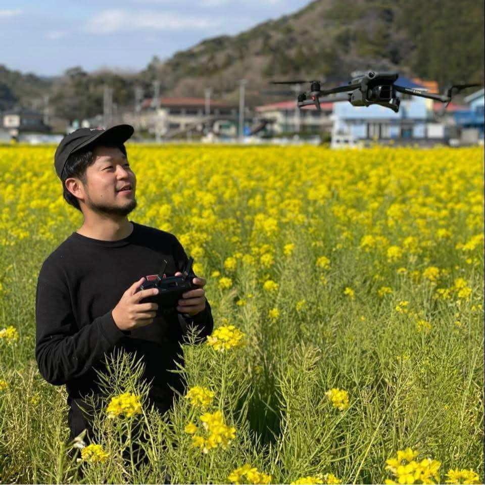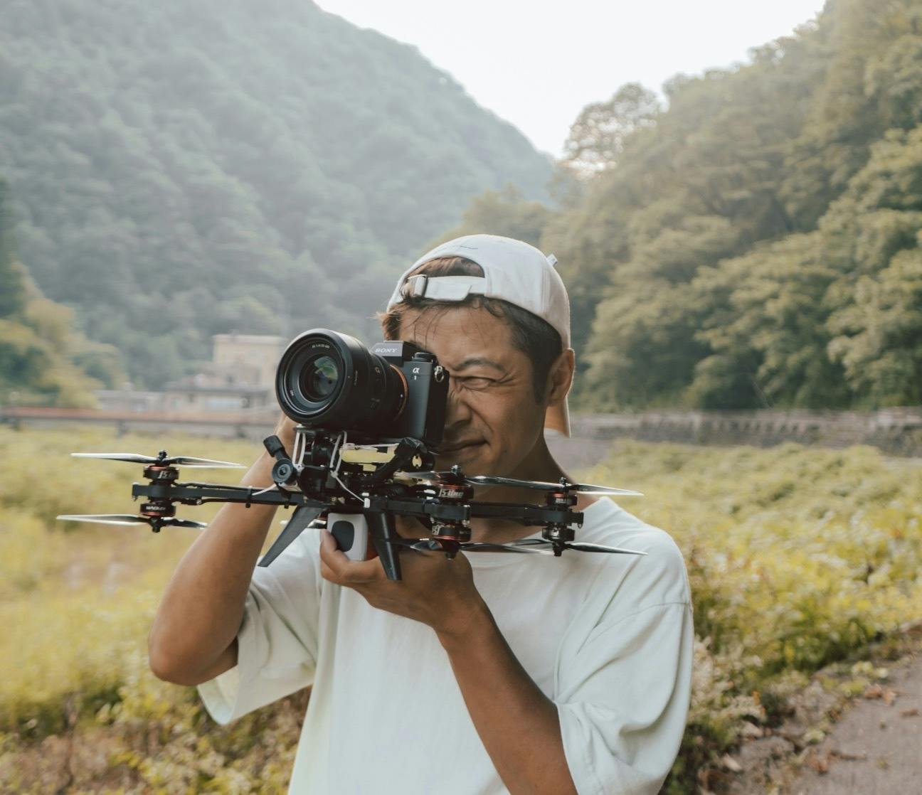 2020年の初年度より本プロジェクトに参加 京都出身TV・CM撮影など様々な映像制作に携わり、高い操縦技術と安定感を発揮。自作ドローンで「とんかつ」や「ホールケーキ」を運ぶというチャレンジがテレビメディアでも話題に。「より多くの人に、美しく高画質な映像を届けたい」という想いのもと、ドローン映像の可能性を広げ続けています。