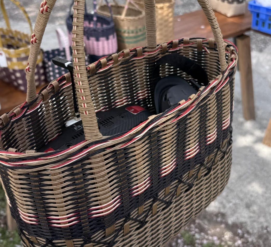 これまで訪れた「桜の名所」と言われる場所や「絶景スポット」、「観光地」の多くは、ほぼ全員がスマホを掲げている光景が目立ちますが、集落の上に植えられた桜の周りには地元の方たちが声を掛け合い、桜を見にくる人たちと目を見て会話している光景がありました。おばちゃんたち手作りの佃煮や採れたての筍や蕨(後でアク抜きして食べました)、ドローン機材にちょうどよい牛乳パック製のバッグなどもゲットしました。
