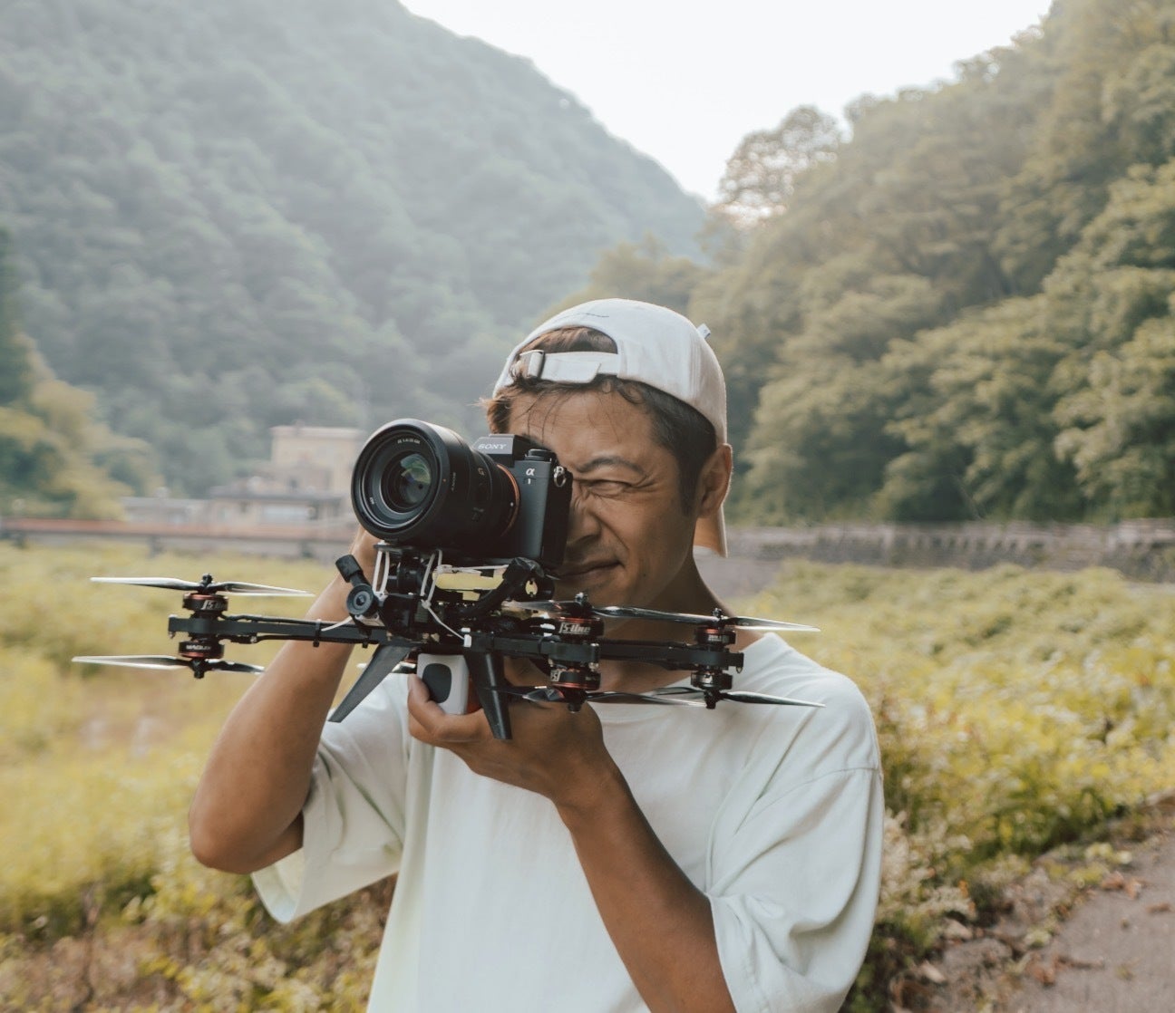 石川県野々市市出身。南海電鉄CMや廃線を自作ライティングドローンで全線撮影するプロジェクトなど、FPVパイロットとして多彩な現場を経験。映像プロデューサーとして培った構成力と、FPVならではの没入感ある飛行表現を強みに活動する。本プロジェクトではパイロット業務に加え、メンバーの舞台裏も記録。「桜をただ美しい風景として映すだけでなく、その場所に流れる時間や人の営みなどプロジェクトメンバーや桜に関わる人達の想いを感じて頂けると嬉しいです。」