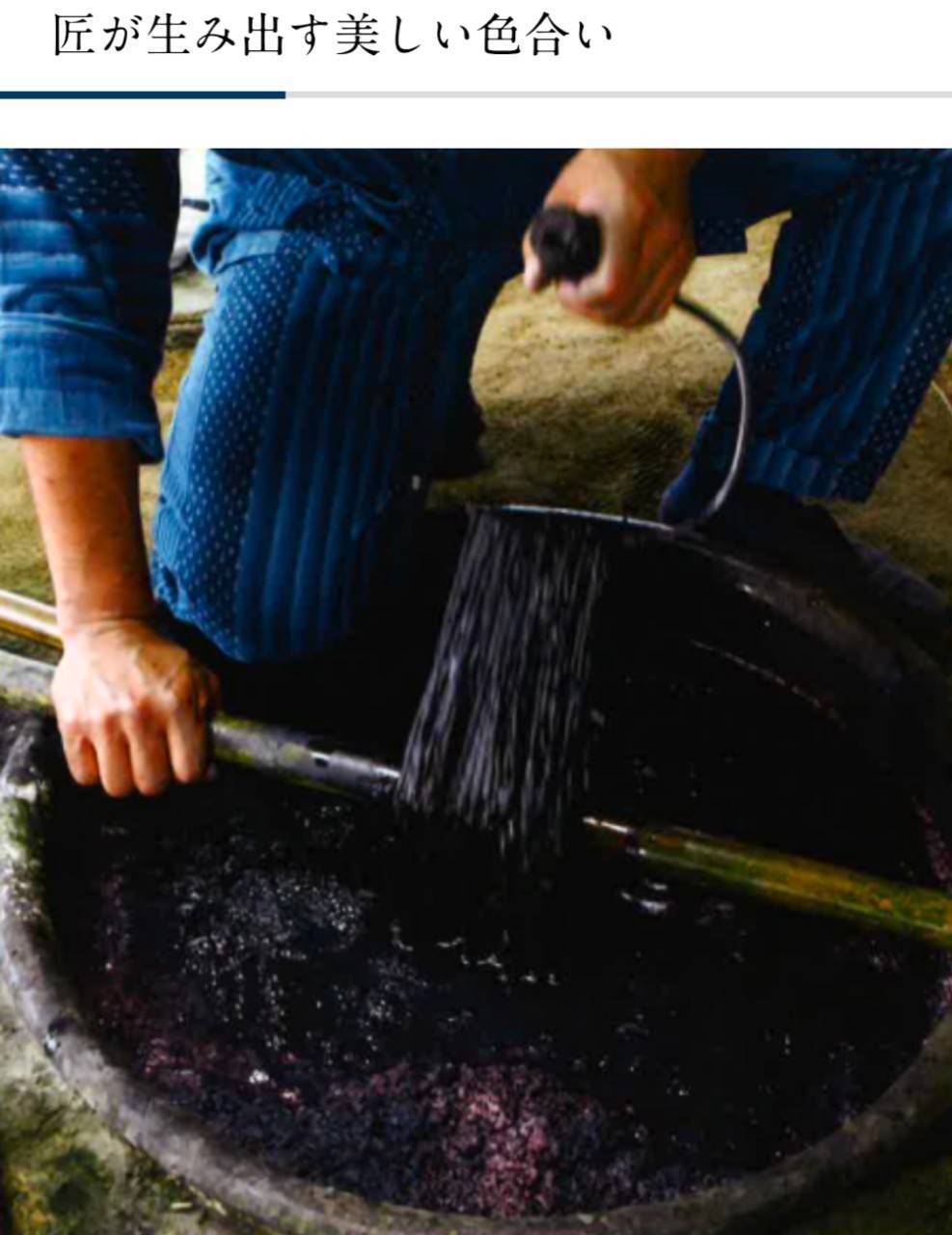 久留米絣の染めには、天然の藍が使われています。職人の手によって、糸を藍に浸しては絞り、叩くという作業を約50~60回も繰り返すことで、深みのある美しい藍色が生まれます。この工程を経ることで、着るほどに風合いが増し、洗うたびに藍の色が冴えていくのも、久留米絣ならではの魅力です。