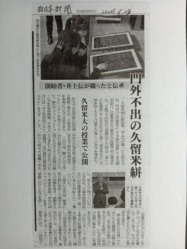 ◇◆西日本新聞にも掲載 久留米大学の授業で初公開◇◆