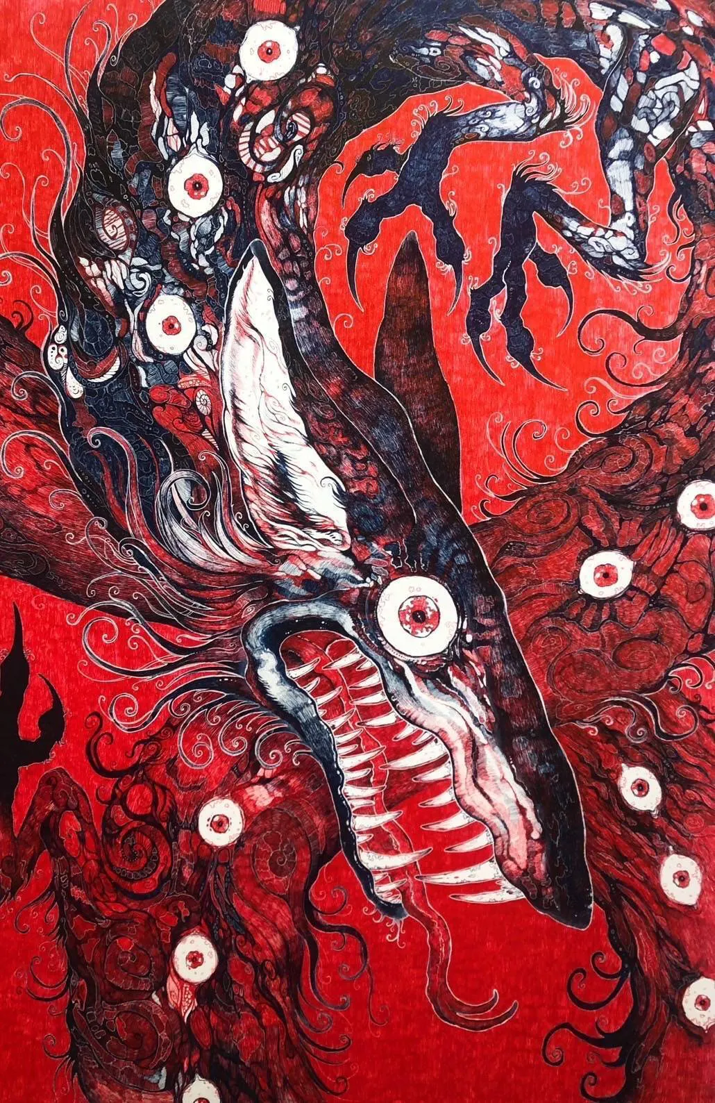 仄暗い世界に潜むいきもの達を描く。