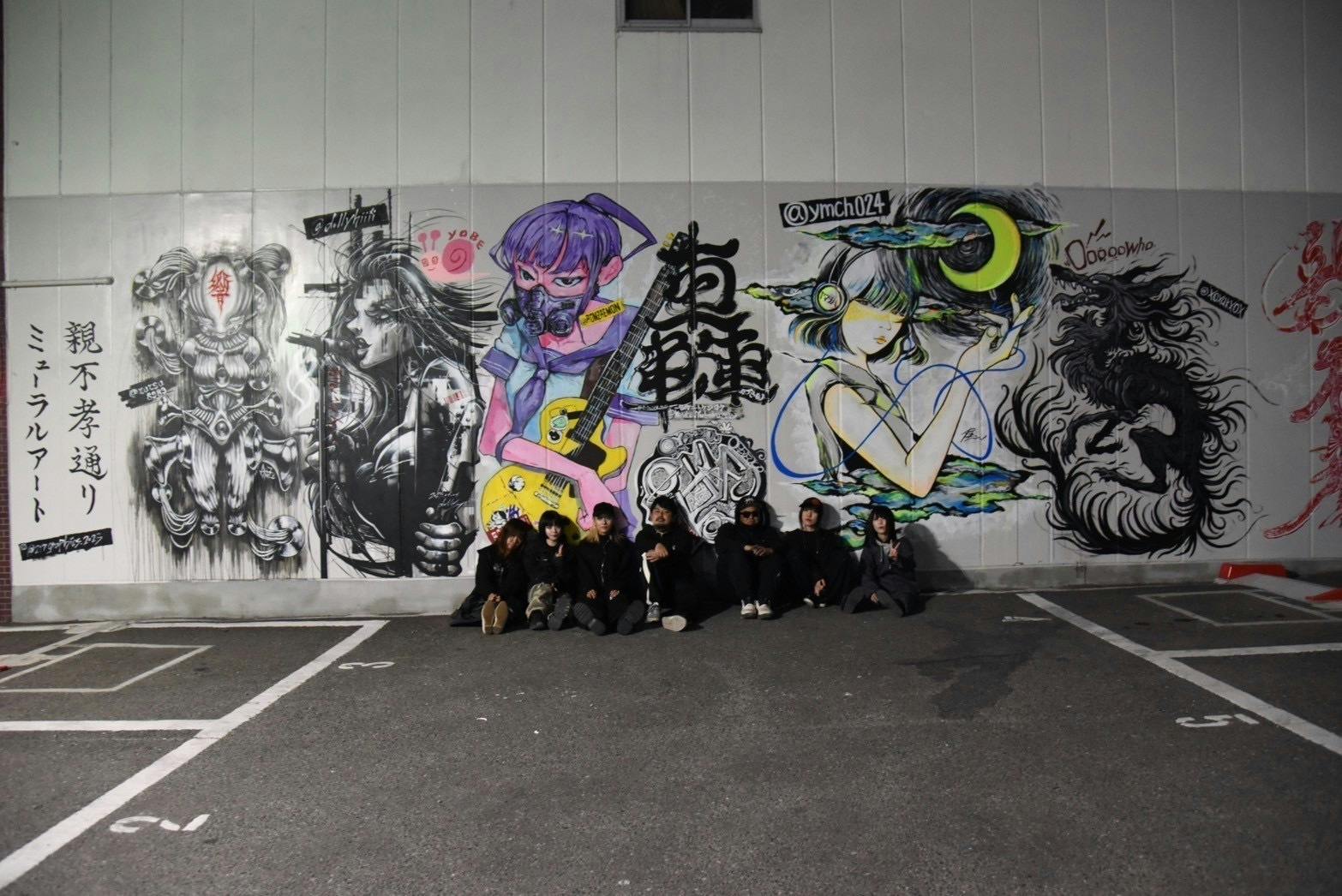地元の現代アーティスト6名が集結し、親不孝通りの壁に魂を込めたアートを描きます。