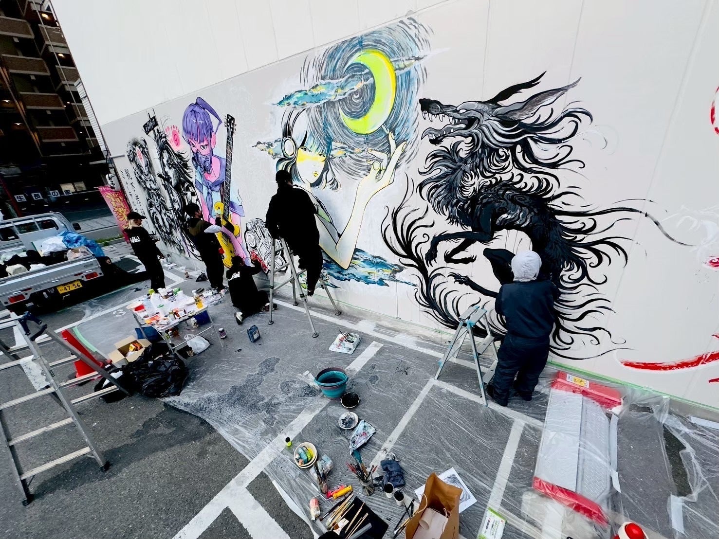 アートが生まれる現場には、地元の方々や通りがかりの方も足を止めてくださり、作品が完成する過程も“まちの風景”として共有されました。作品はこれからも、日常の中でふと目に入り、訪れる人にインスピレーションと活気を与え続けてくれるはずです。
