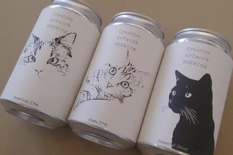 今のところ3つまでラベルは固まっています。今どきのカラフルな缶ビールが並ぶクラフトビール市場の中で、モノクロ猫デザインで攻めます!
