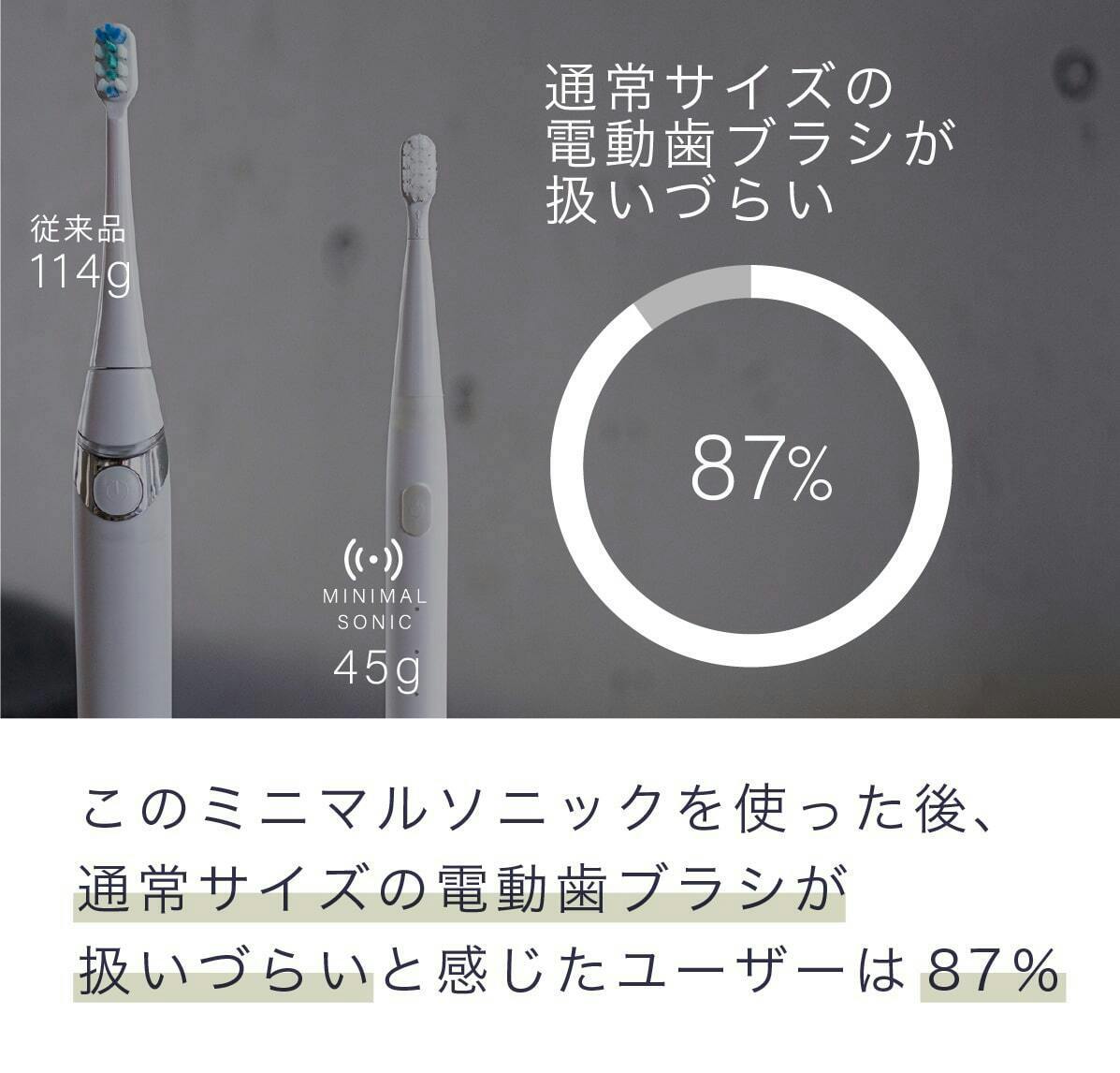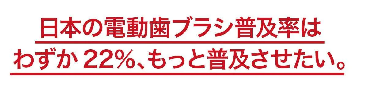 電動歯ブラシの普及率は先進国の42%と比べて、日本は22%と言われています。まだまだ普及が必要だと私達は考えミニマルソニックが普及のきっかけになればと思っています。