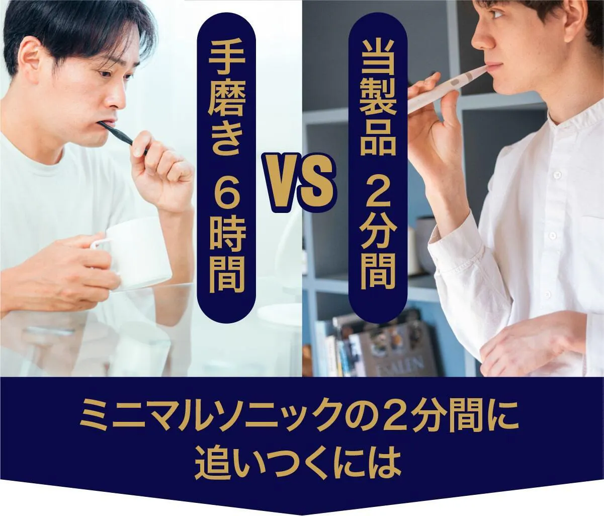 ミニマルソニックは2分間で44,000回磨けますが、手磨きで44,000回磨くには6.1時間も必要です!圧倒的な時短&効率化&生産性アップを実現するミニマルソニックを是非、お試し下さい!