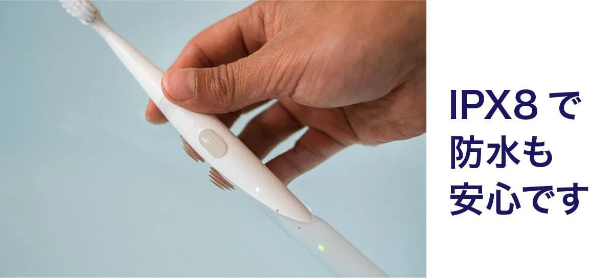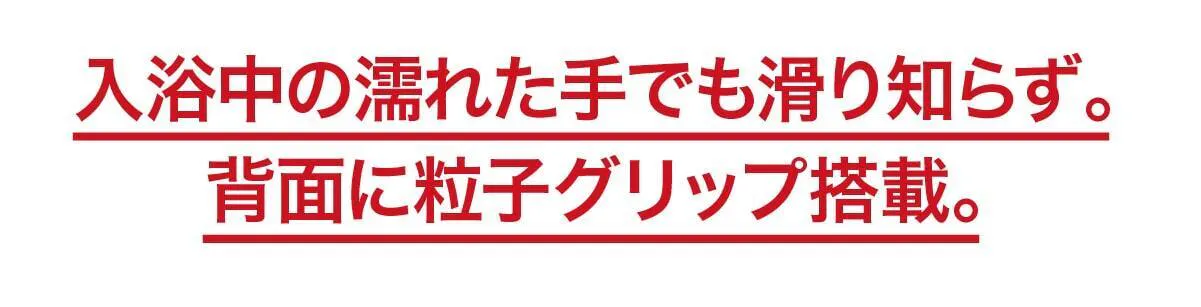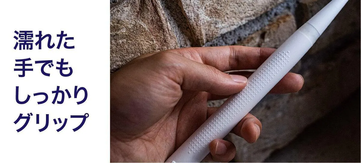 入浴中に歯を磨くには、防水機能の他に水滴などで磨く手が滑らないようにする必要があります。ミニマルソニックは「粒子グリップ」を搭載し、入浴中の歯磨きに最適です。