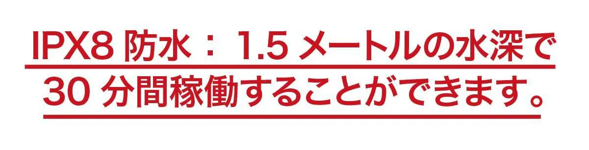 version1ではIPX7防水でしたが、IPX8防水にレベルアップしました。IPX8は防水を示す数値のなかで高いレベルで、水深1.5メートルに沈めて、約30分経過してから取り出しても問題なく使えます。