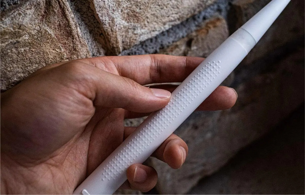 ミニマルソニックは軽くて小さいながらもパワフルです。その特徴を支えるのが粒子グリップです。手にしっかりフィットして高いグリップ力で磨くことができるのです。