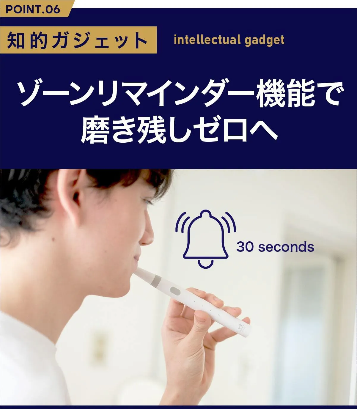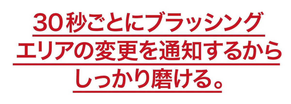 ゾーンリマインダー機能であなたが30秒磨く毎にバイブレーション通知が。上下と表裏の4箇所をしっかり磨くことができます。