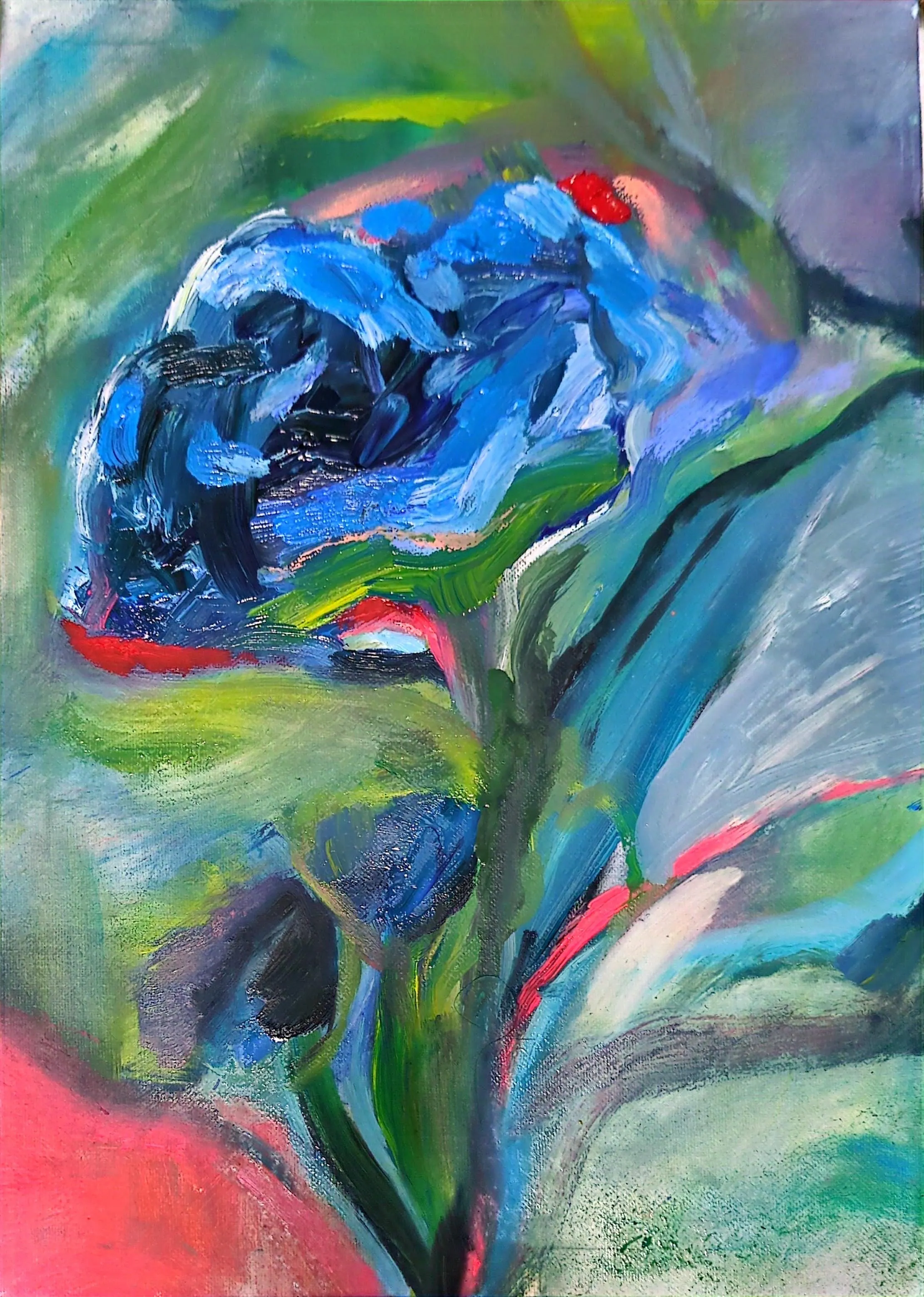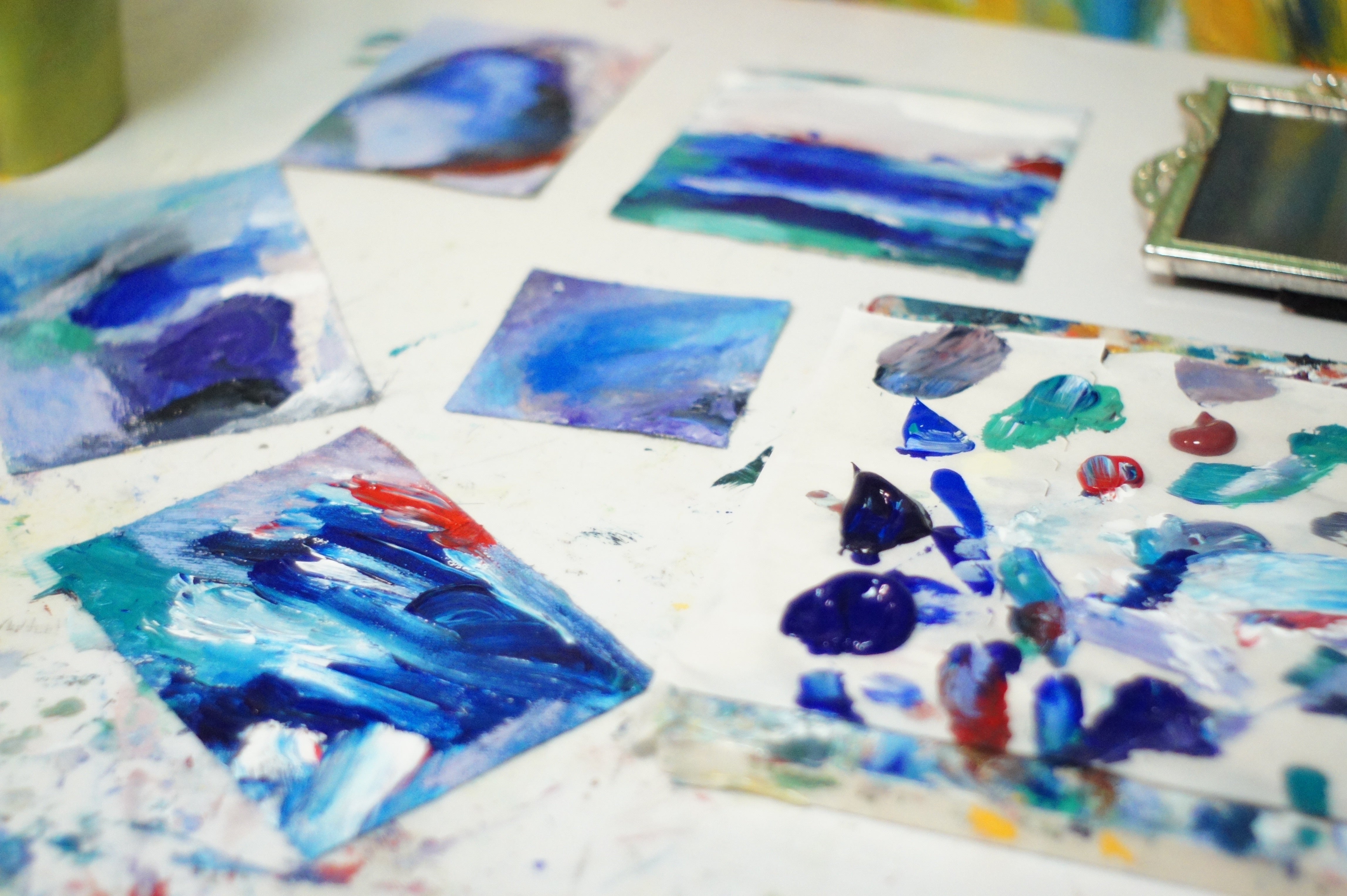 コンセプト:現代j美術家あおいうには統一教会の家庭で生まれ育ちことに恋愛や性において苦難の道を歩んできたが、去年良い出会いがあり晴れて結婚をした。過去にメンヘラ展といったグループ展も主催してきたが、そろそろトラウマからの解放というテーマに真摯に取り組んでも良いだろう。あおいにとって、絵画は自分自身の自由意志でで掴み取った信仰であり、宗教だ。そこから得るものは救いであり癒し。なかなか難しい人生ではあったかもしれないが、過去もまるごと肯定し、受け入れ、自分自身を愛していこう。あおいの真っ青な絵画からは、人を癒したり、時には共感して傷ついたり、そんな複雑さが見え隠れするかもしれない。