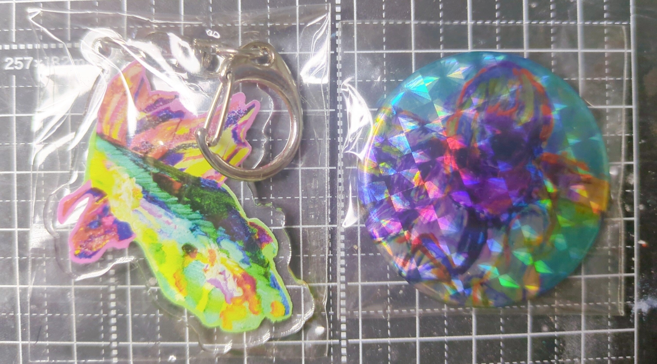③キラキラ缶バッチ(直径4.5cm) 、抽象タッチアクキー(5×5cm)・・・2000円