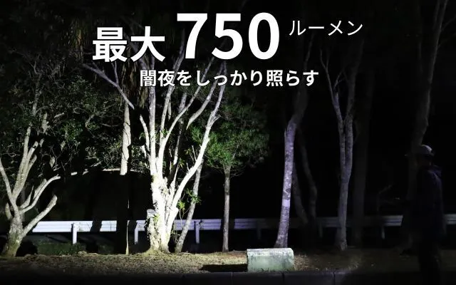 超コンパクトなボディにもかかわらず、最大750ルーメンの強力な光を照射。