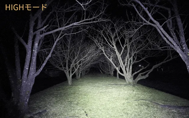 A:メインライトモードについては、HIGHモードは約2.5時間、MEDモードは約5時間、LOWモードは約6時間、MOONライトモードは約30時間です。