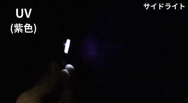 またサイドライトとして、赤色、点滅、UVを含む5種類のモードが使える点も魅力。特にUVモードの使い方としては、部屋の灯りを落として使うと、気付かなかったキッチンの汚れを発見できたり、便利な使い方ができます。