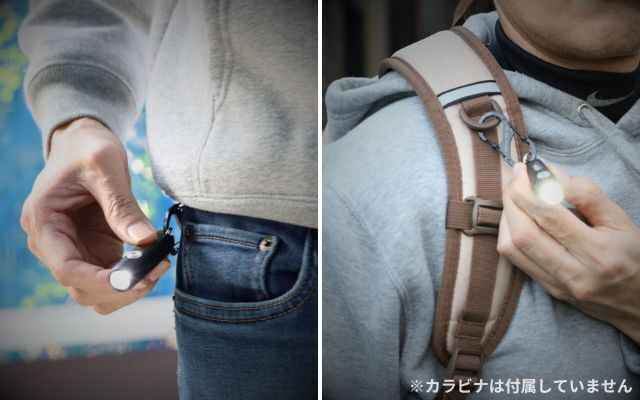 ズボンループやバッグパックにつけて。