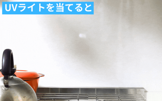●目に見えにくい汚れを見つけるのにUVモードが活躍