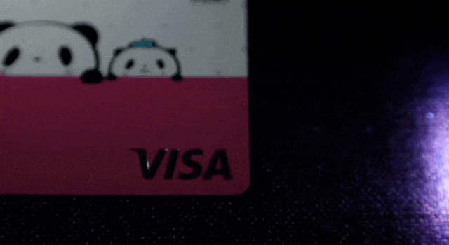 クレジットカードにUVライトを当ててみると、写真1枚目のように、ちゃんと「V」の文字が浮かび上がります!(写真1枚目)