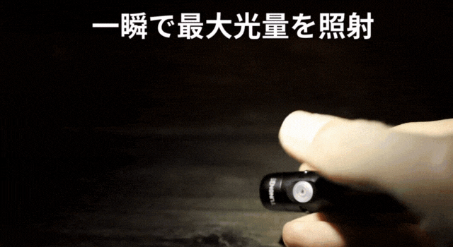一瞬で最大の明るさを照射できるので、即座に明かりが欲しいときにぜひ使って頂けたらと思います。