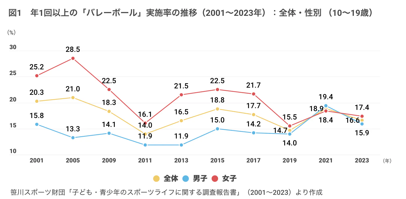 実は近年、日本ではバレーボール人口が激減しています。(2000年から約20年で半数以上減っているというデータも...)