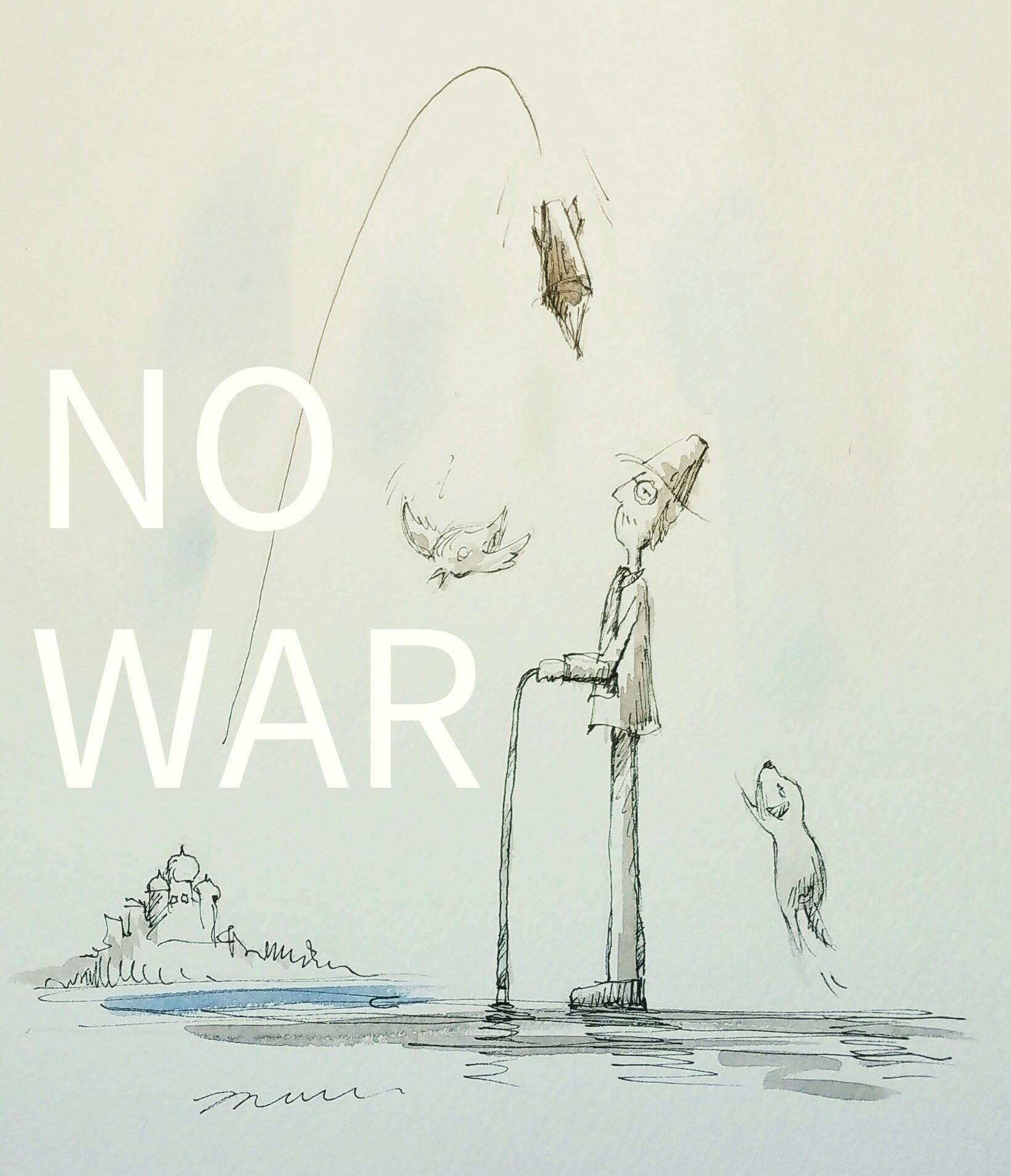 世界中を旅してきたオジサンは「平和を願う人」です。争いのない穏やかな世界で、静かに絵を描き、旅をすることを望んでいます。