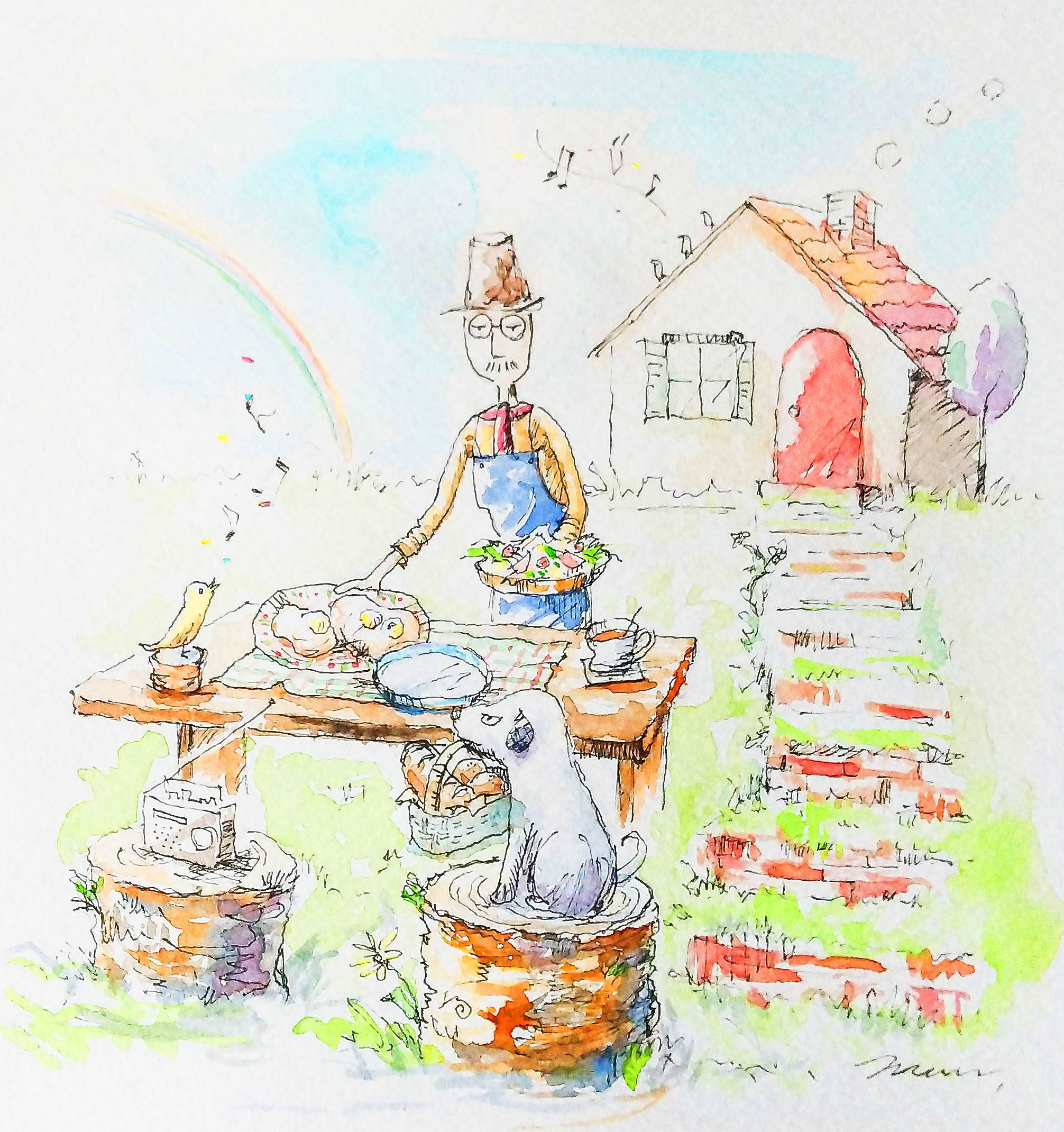 世界中を旅してきたオジサンは「平和を願う人」です。争いのない穏やかな世界で、静かに絵を描き、旅をすることを望んでいます。