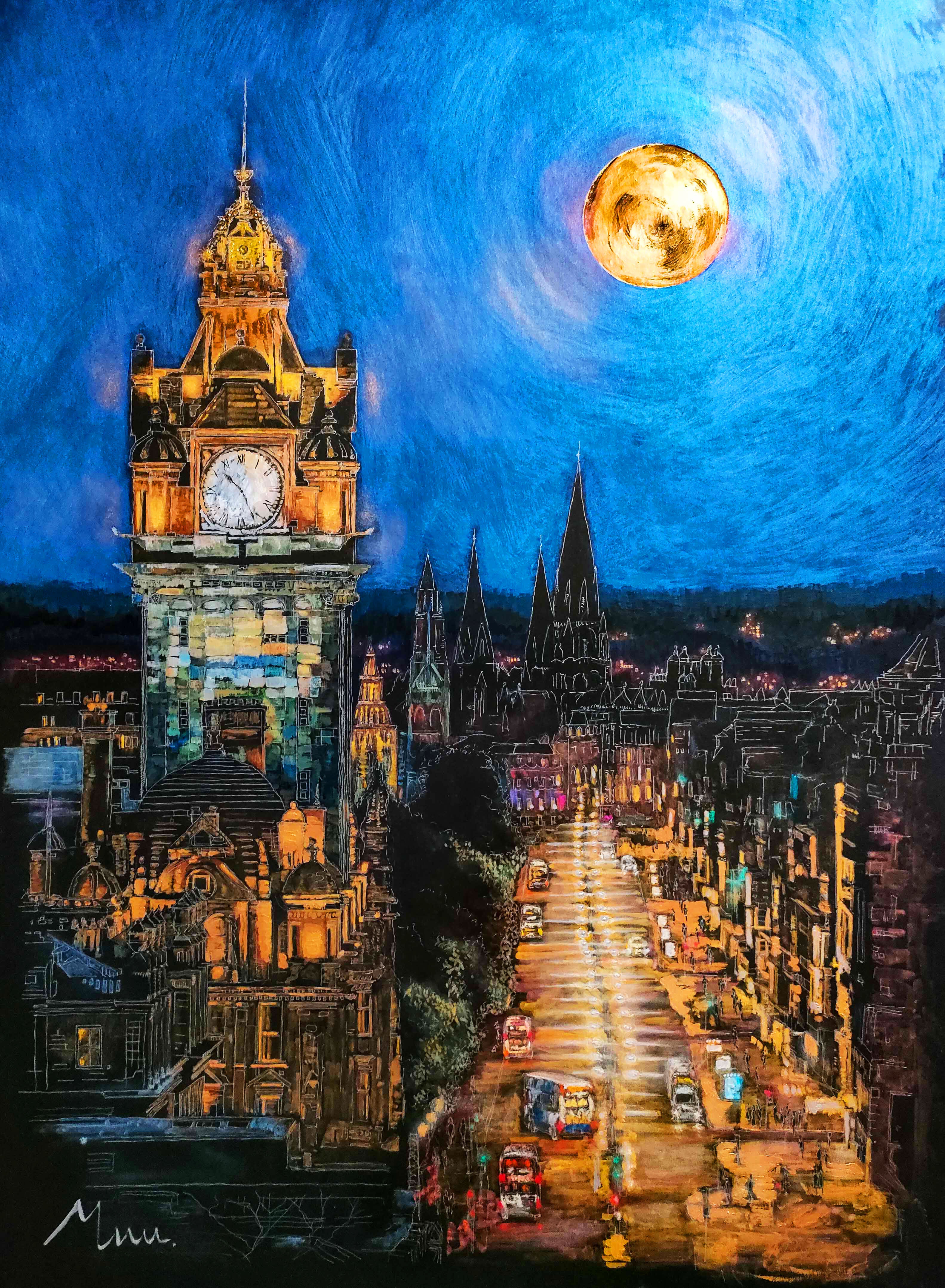 オジサンが旅した地『エジンバラの時計塔』プリンセスストリート・B1原画1枚(額装込)