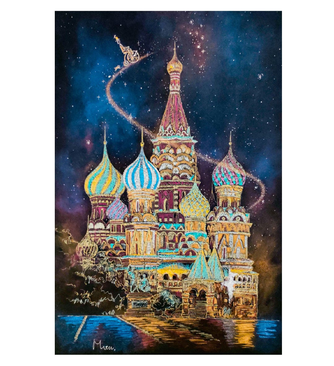 オジサンが旅した地「 聖 夜 」モスクワ 聖ワシリイ大聖堂・B4原画1枚(額装込)