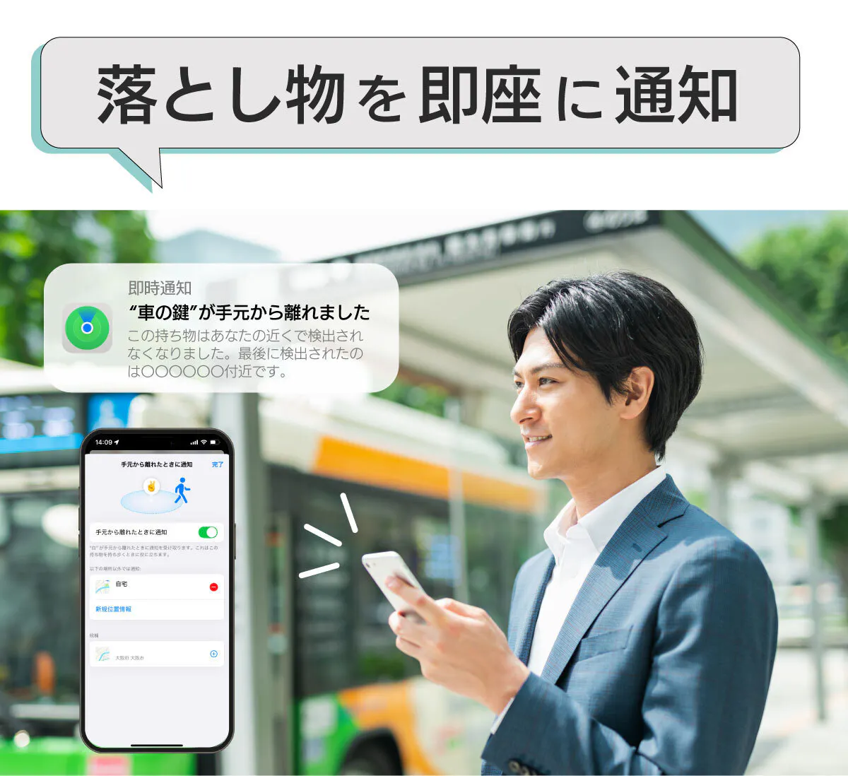 (※手元から離れた時に通知する機能をオンにしておくこと)