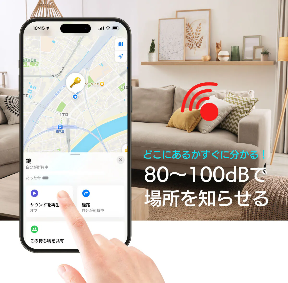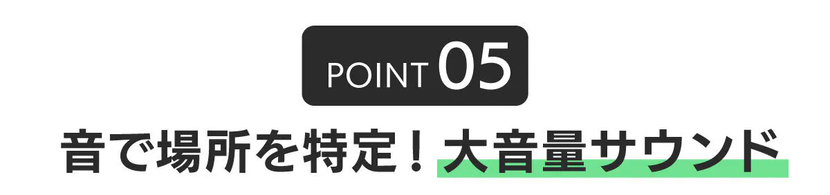 再生されるサウンドは100dBの大音量。「近くにあるはずなのに見つからない!」といった場面でも効果的です。