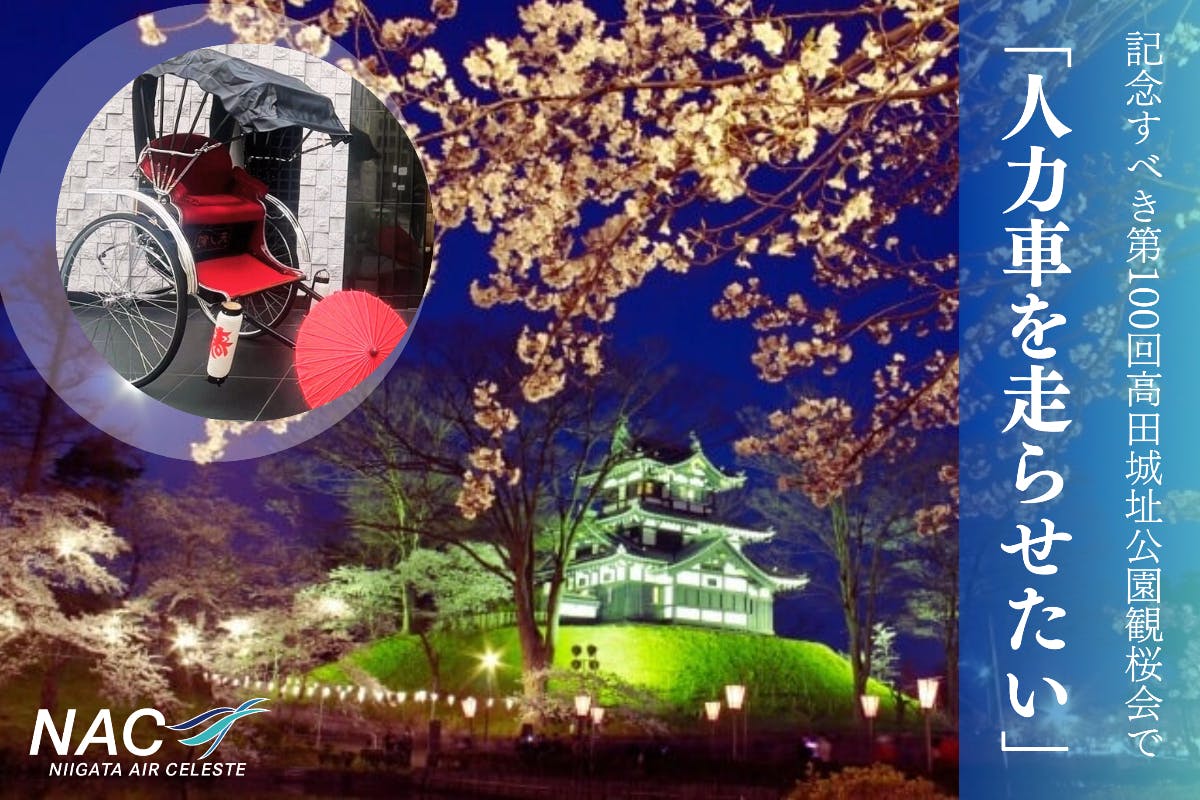 今年の「第100回高田城址公園観桜会」は、上越市の歴史的な名所である高田城址公園を舞台に、桜の美しさを堪能する特別なイベントです。この記念すべき節目に、人力車を運行させたいと考えています。