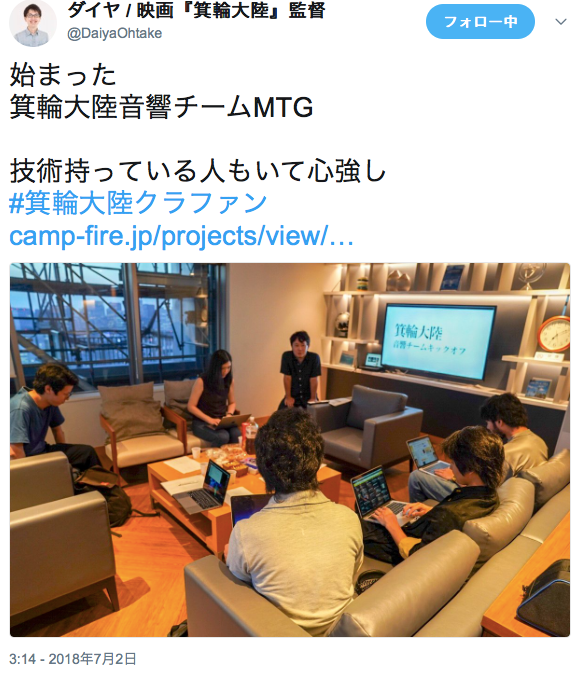 どうやら今日は、映画に欠かせない、音響チームのキックオフが都内某所で行われた模様。
