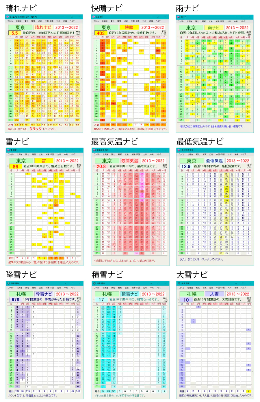 各種19種類の「ナビ」で、ご当地天候風土がわかります