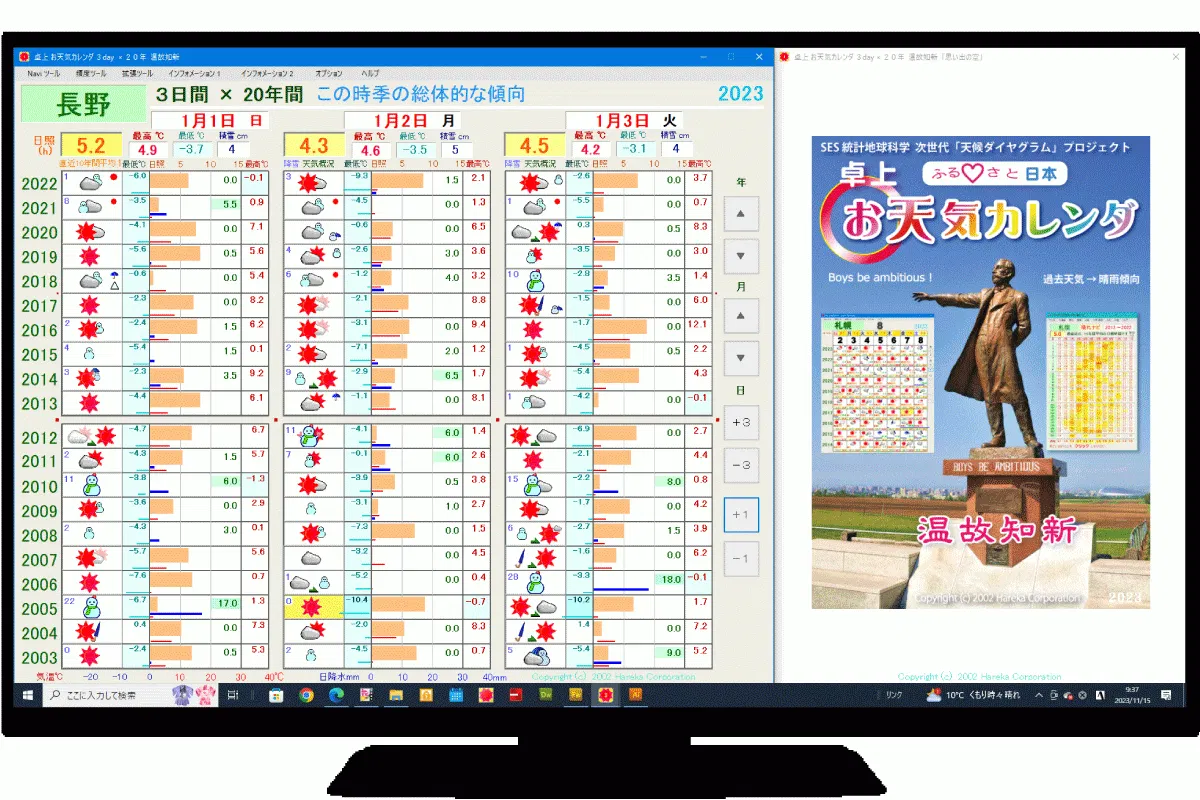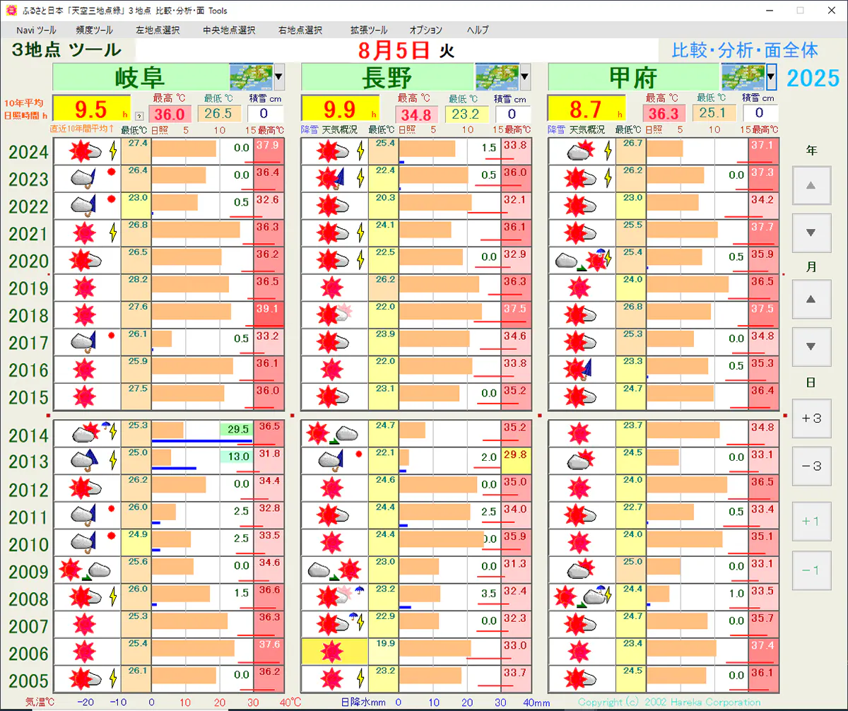 そんな、ふるさとの記憶を辿りたい時に、このツールを使ってほしいと思います。こんな思いはわがままかもしれませんが、ご当地ふるさとの ”気象地域史”のような教材としての存在になりたいと思っています。