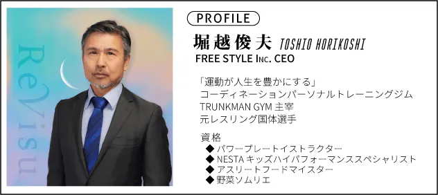 私はFREE STYLE Inc.の中の事業の一つとして、コーディネーション(身体の使い方、連動性)に体幹強化や呼吸法、食事指導などのパーソナルトレーニングジム「TRUNKMAN GYM」を運営しております。