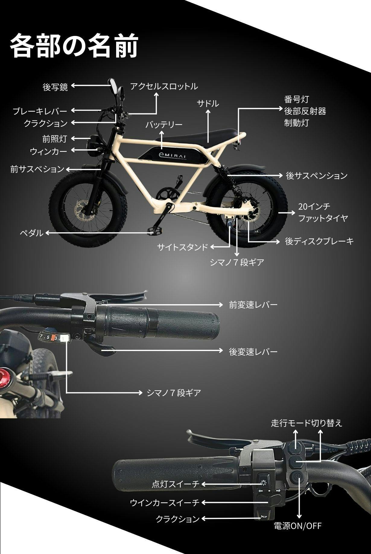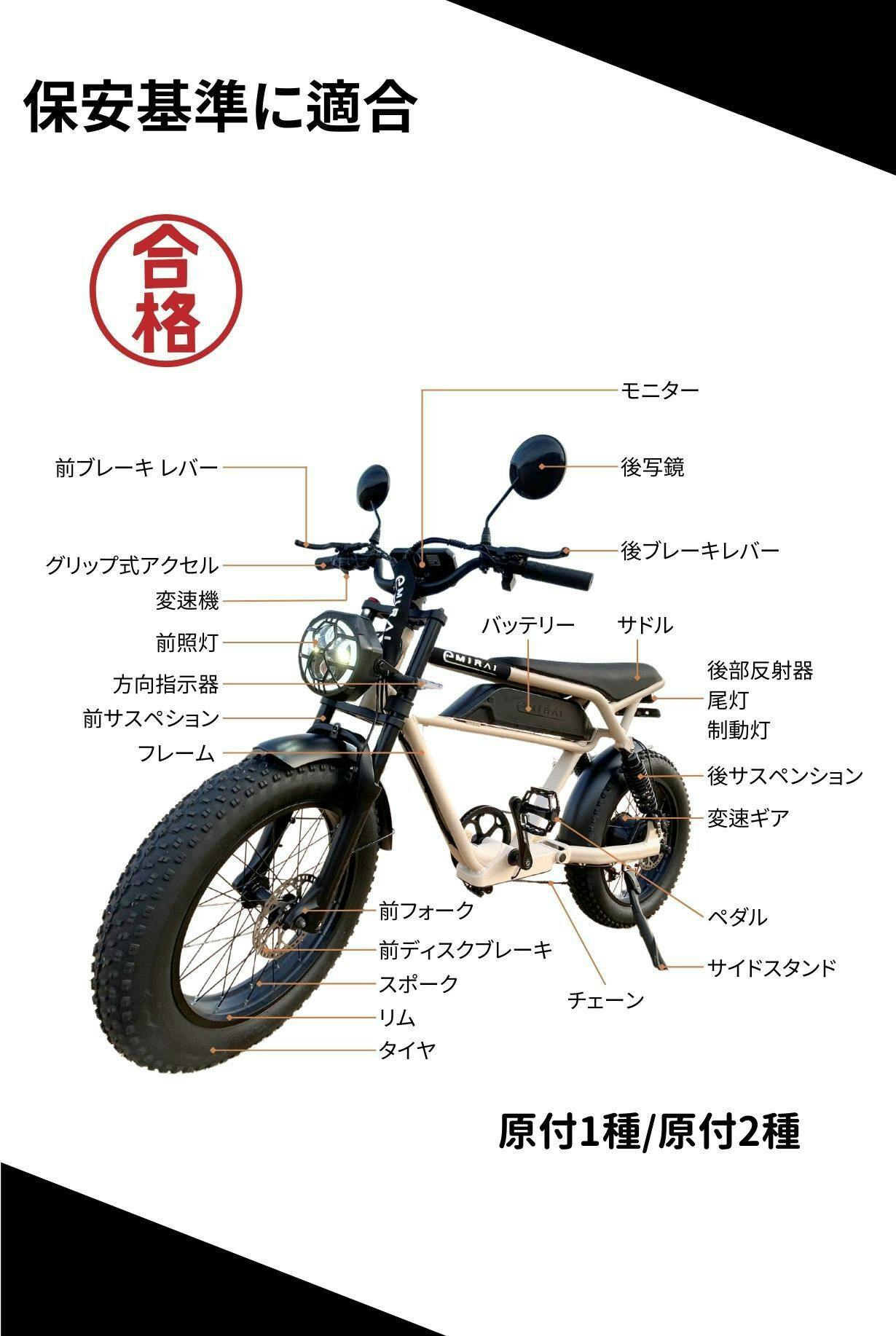 ※法律上で定められている、公道走行に必要な保安部品を全て標準装備。ナンバープレートを取得し、自賠責保険に加入する事でヘルメットを着装すれば公道を走る事が出来ます。