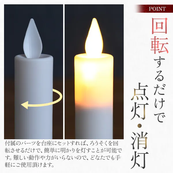 ・ろうそくを回転させるだけで簡単に点灯/消灯