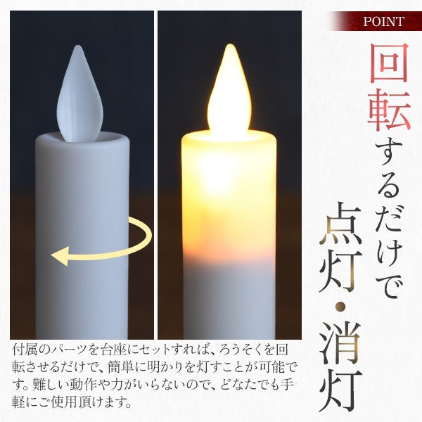 台にセットすることで、回すだけで点灯/消灯ができるので難しい動作や力が不要で誰でも簡単に使用できます。
