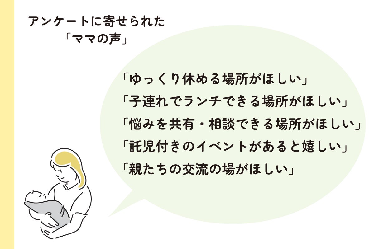 「じっくり休みたい」「ゆっくり美味しいごはんを食べたい」「育児の相談をしたい」「交流したい」・・・