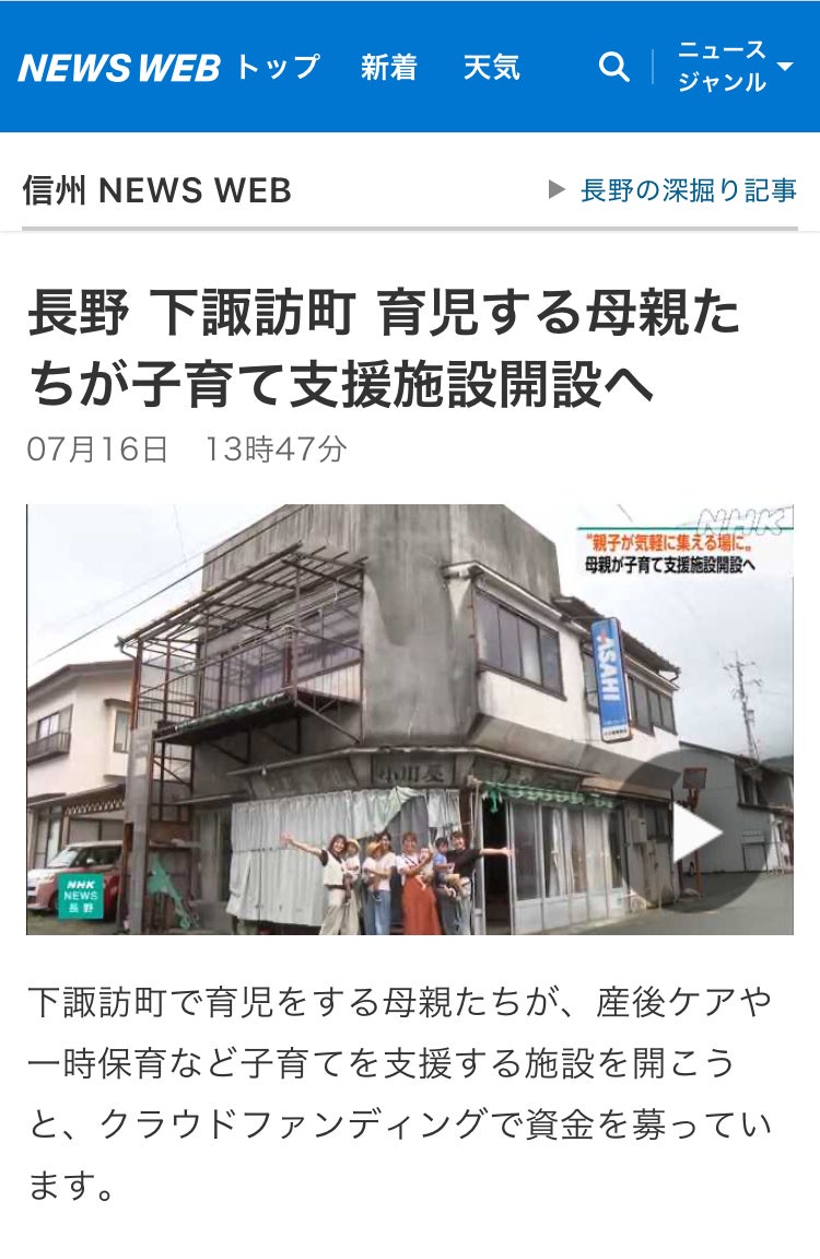 長野 下諏訪町 育児する母親たちが子育て支援施設開設へ|NHK 長野県のニュース