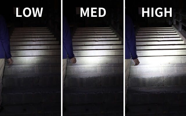 LOW:30ルーメン MED:120ルーメン HIGH:420ルーメン