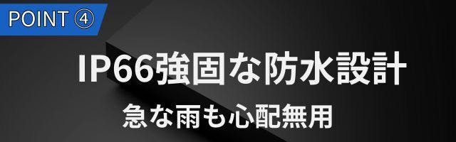 国際規格IP66をクリア。急な雨の時も問題なく使用できます。