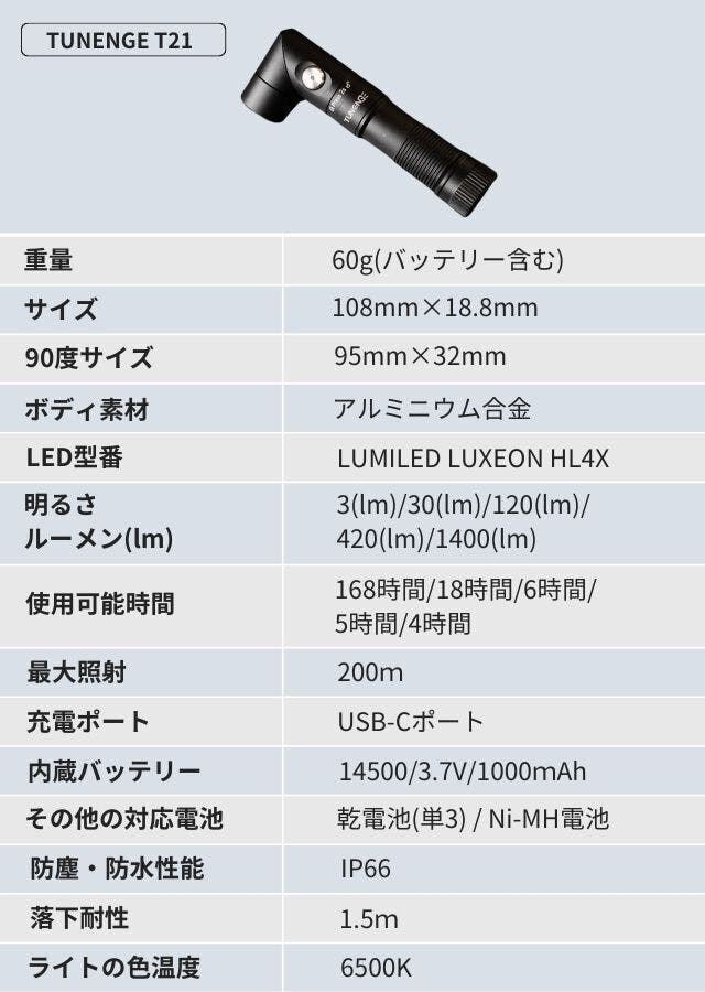 LEDライト業界で急成長しているブランド「TUNENGE」より新たに登場した『T21』。
