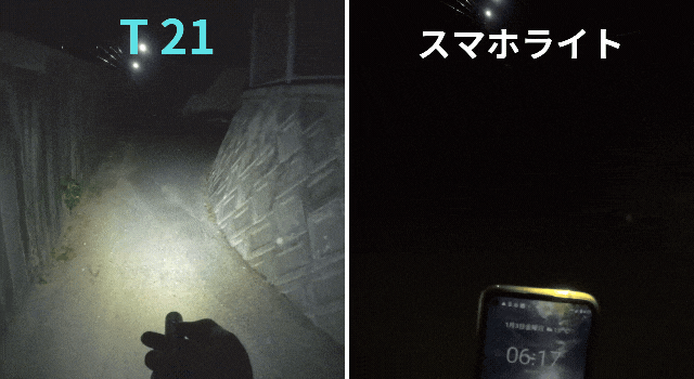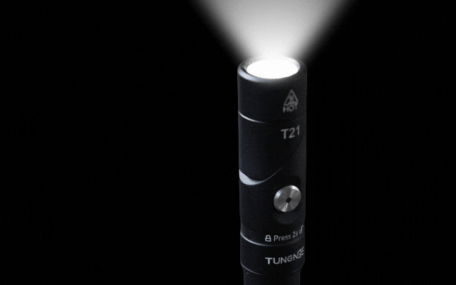 小型タイプの懐中電灯は300ルーメンを超えるとかなり明るいとされている中、『T21』は視認性の高いクリアな明るい光で暗闇をしっかり照らす。