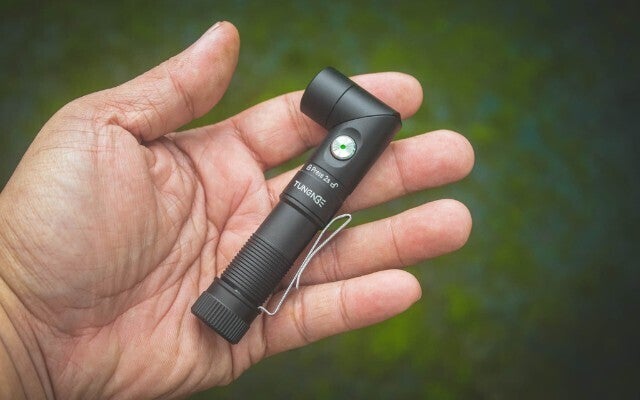 またそのサイズ感により携帯性に優れている点も魅力です。人差し指サイズの圧倒的ミニマムボディながら、その圧倒的な明るさが魅力です。6500(ケルビン)の高輝度で1400(ルーメン)の明るさ、200mの照射距離を備えたLED懐中電灯。